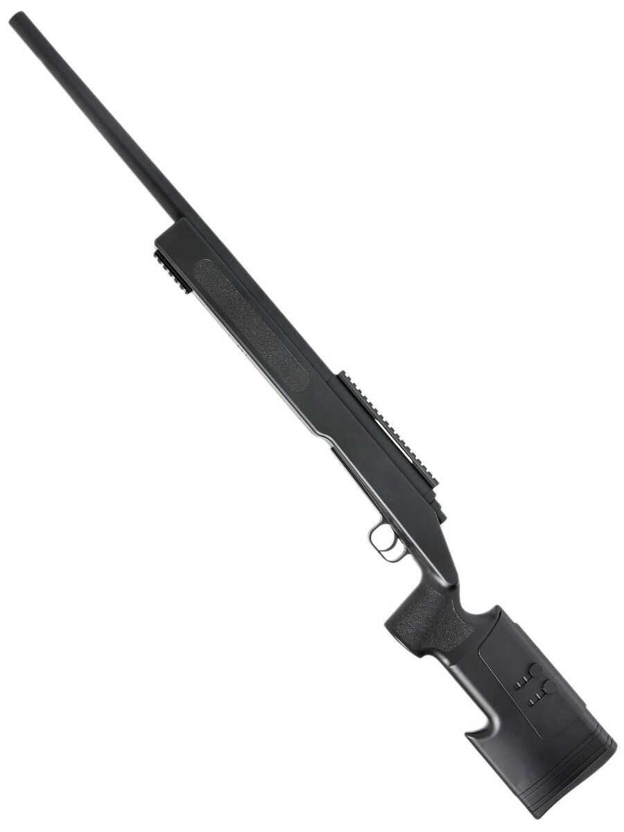 The M40A3 Sportline is a fully licenced replica of the trusted US Marine Corps sniper rifle. Our 1/1 scale 6mm airsoft version replicates many of the features of the ‘real steel’ firearm including an adjustable cheek rest and stock to adjust the gun to best suit the shooter and a 20mm accessory rail to mount scopes and other aiming devices. The durable polymer body has textured grip areas and multiple QD sling attachment points and a shorter lower 20mm rail to facilitate a bipod, all in all, making this an incredibly versatile sniper rifle. This spring powered version has an energy output of 1.9 joules (Approx. 445 FPS with a .20g Blaster BB) and has a remarkably smooth and easy allowing for fast re-cocking and rapid follow up shots. Colour: Black