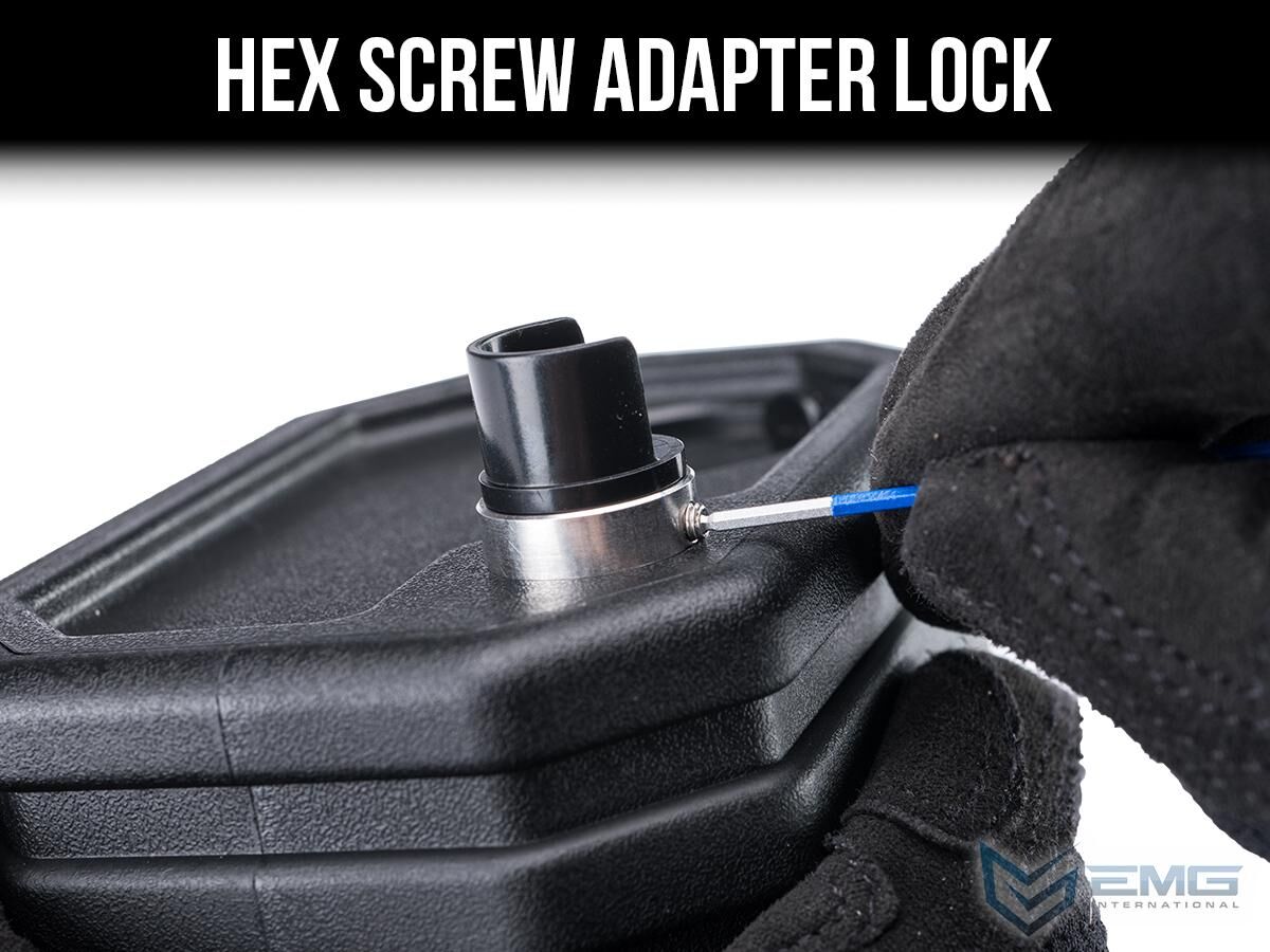 Externally, the Autobot features a full DuPont polymer shell, complete with a customizable Dot Matrix strips on either side. The loader comes complete with a set of 4 different magazine adapters, allowing for use with a wide variety of the most common Airsoft magazines. These adapters securely lock in place with an included set screw, keeping them tightly connected to the loader while in use. The AEG mag adapter also doubles up as an unloading nozzle; Simply lock the adapter into place in the BB reservoir and unload your mags!